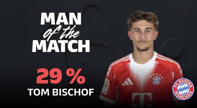 德甲第9轮,拜仁慕尼黑主场3-0大胜勒沃库森,此役送出一次助攻的比朔夫当选德甲官方全场最佳球员。