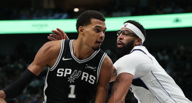 文班亚马在季前赛就打出了高效的表现,率领球队打出5连胜的战绩。常规赛揭幕战对阵独行侠,文班亚马打得非常神勇,他首节就大帽浓眉哥,并且用各种方式得分。文班亚马进攻无死角,有中投,有三分,也能在篮下进攻。